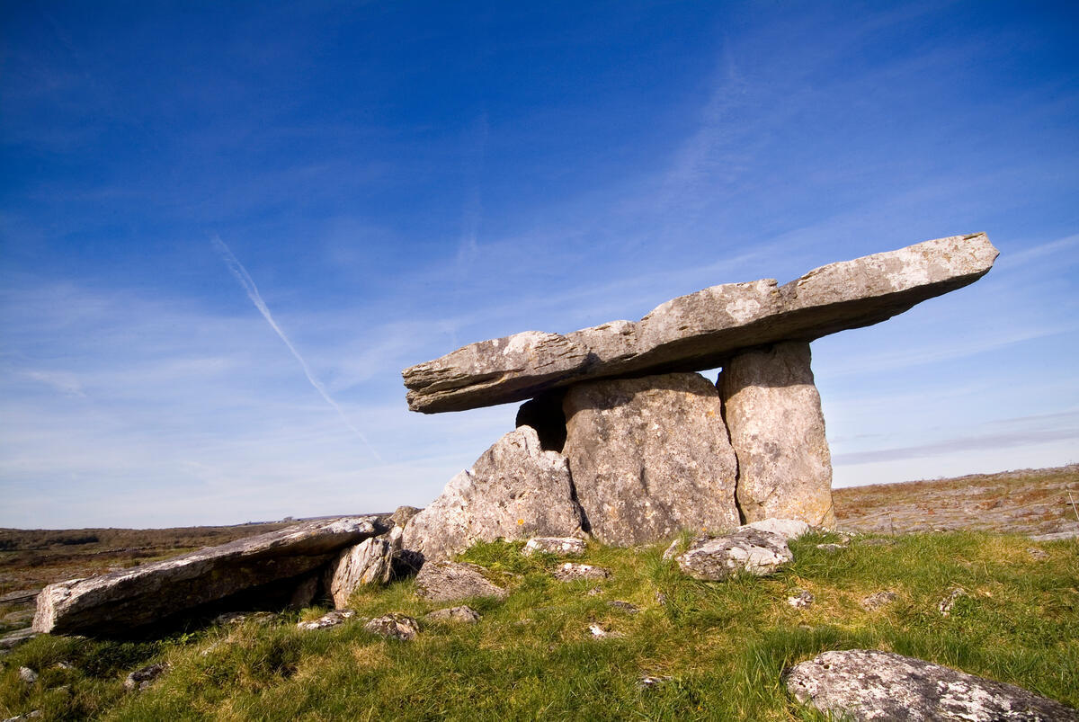 Neben den berühmten Klippen bietet der Burren zahlreiche weitere Sehenswürdigkeiten. Besonders eindrucksvoll ist der Poulnabrone Dolmen, ein über 5.000 Jahre altes Steingrab mitten in der kargen Landschaft.