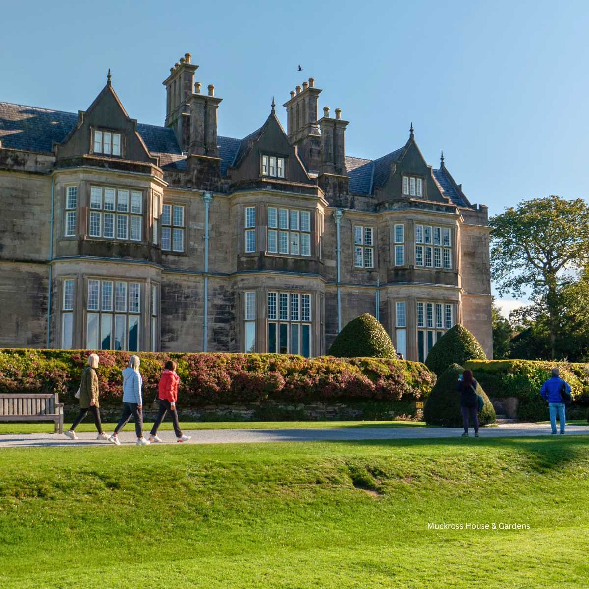 Nach einem kurzen Spaziergang entlang des Sees erreichen wir das malerisch gelegene Dinis Cottage. Von hier geht es bei schönem Wetter mit dem Boot zum Muckross House, dem Herzstück des Nationalparks. Dieses viktorianische Herrenhaus aus dem Jahr 1843 vermittelt mit seinen originalen Möbeln einen faszinierenden Einblick in das Leben der damaligen Zeit. Sie besichtigen das Haus in Eigenregie (es können und dürfen im Haus keine Führungen angeboten werden).